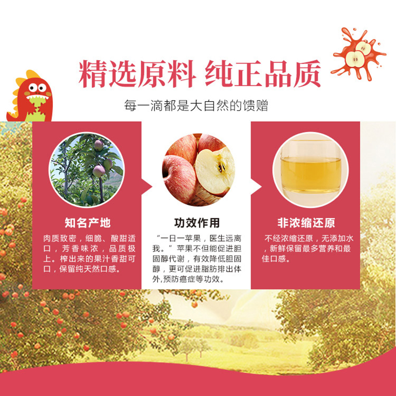 水、蘋果汁、白砂糖、果糖、檸檬酸、黃原膠、山梨酸鉀、苯甲酸鈉、焦糖色(亞硫酸銨法)、食用香精