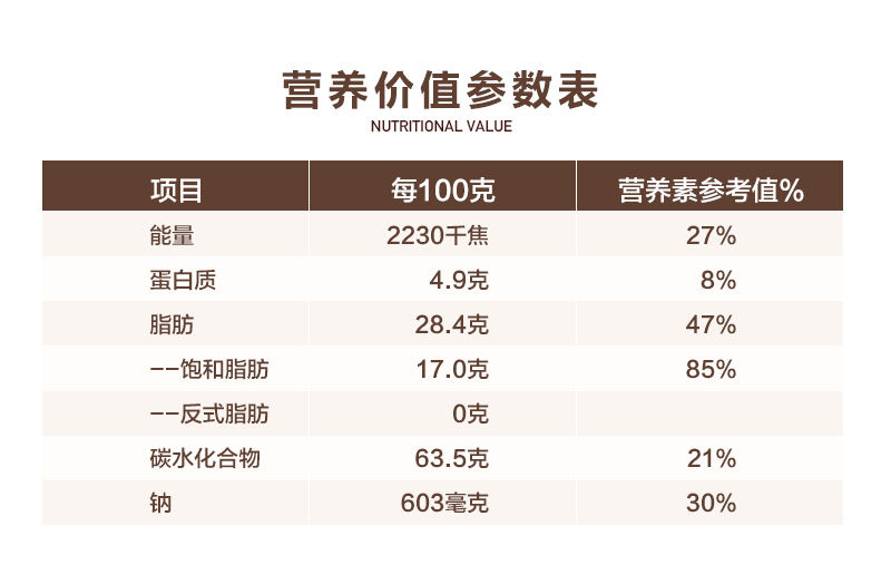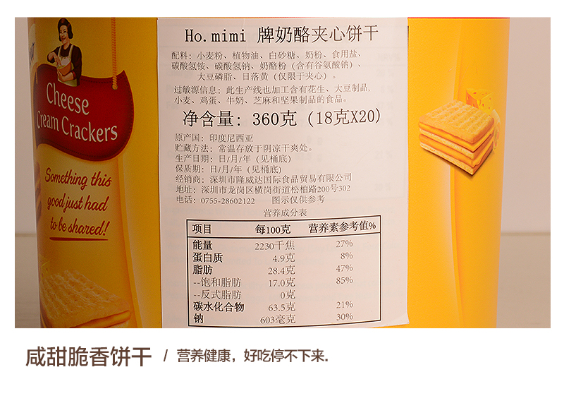 小麥粉、植物油、白砂糖、奶粉、食用鹽、碳酸氫銨、碳酸氫鈉、奶酪粉(含有谷氨酸鈉)、大豆磷脂、日落黃(僅限于夾心)